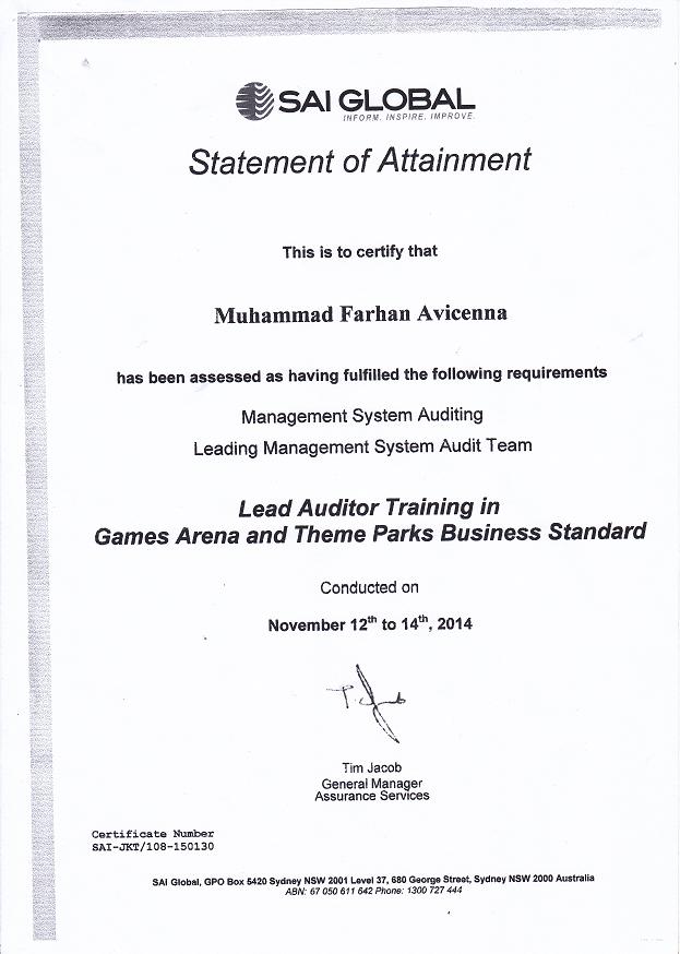 • Sertifikat Auditor